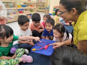 Learn And Play Montessori School helps guide our students by providing the necessary tools to be successful in multiple aspects –including tasks they will face in everyday life. Practical life helps build a sense of responsibility. LAPMS makes sure to show our students how to properly put on a sweater, sit cross-legged, and have suitable hygienic habits including hand washing. These practices give children the confidence to perform everyday tasks on their own, taking bigger responsibility to care for themselves as time progresses. Learning about emotions is substantial for toddlers. Our social-emotional curriculum teaches our toddlers about emotions such as excitement and anger. Knowing how to identify emotions will benefit them in understanding themselves and others plus allow them to regulate their responses to strong emotions.
